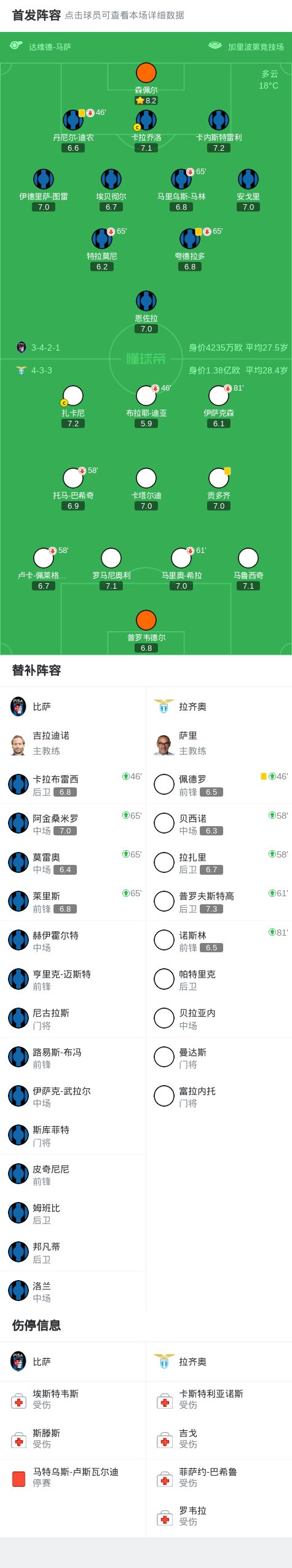 北京时间10月31日意大利足球顶级联赛 联赛 第9轮,比萨主场对阵拉齐奥。最终比分比萨 0-0 拉齐奥。