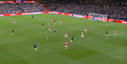 尤其是第68分钟,曼联已经出现了因为全员前倾而连接不畅,从而在转换阶段有些松散和无力的情况了: