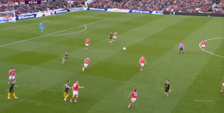 正是因为姆贝乌莫在他身边的移动,让曼联只能说是大致上有了一些双前锋的味道,就像这场比赛,姆贝乌莫依旧在帮助谢什科和阿玛德-迪亚洛打出进攻一样: